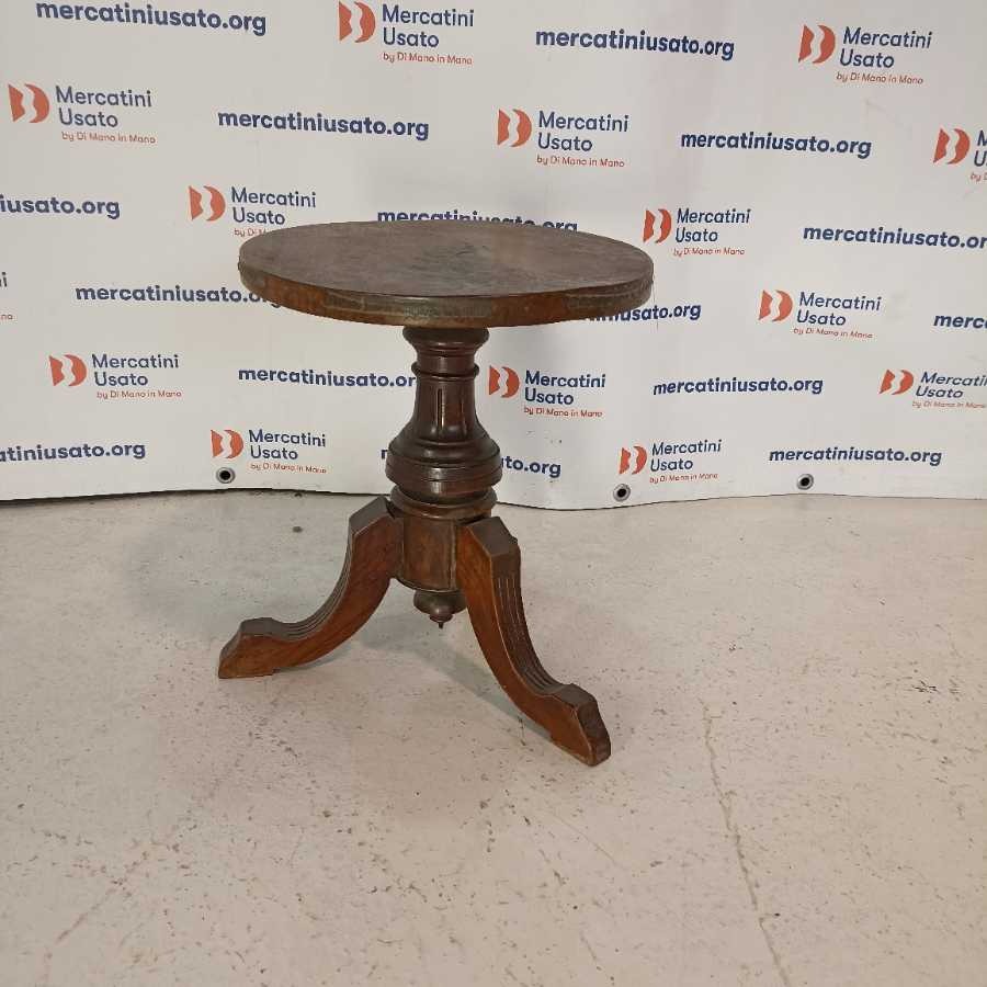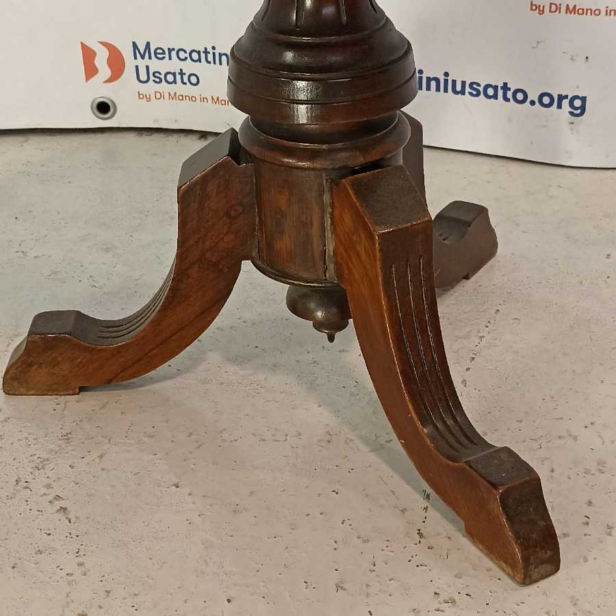Sgabello girevole regolabile in stile. Struttura in legno intagliato su base tripode. Seduta girevole regolabile in altezza. In buone condizioni.