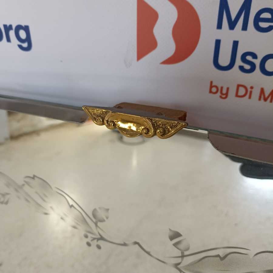 Grande Specchio decorato Vintage. Struttura in legno con inserti in ottone dorato. In buone condizioni.