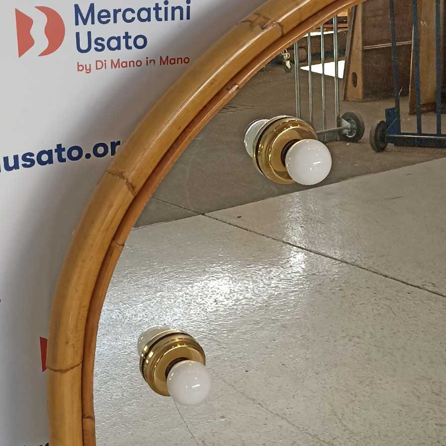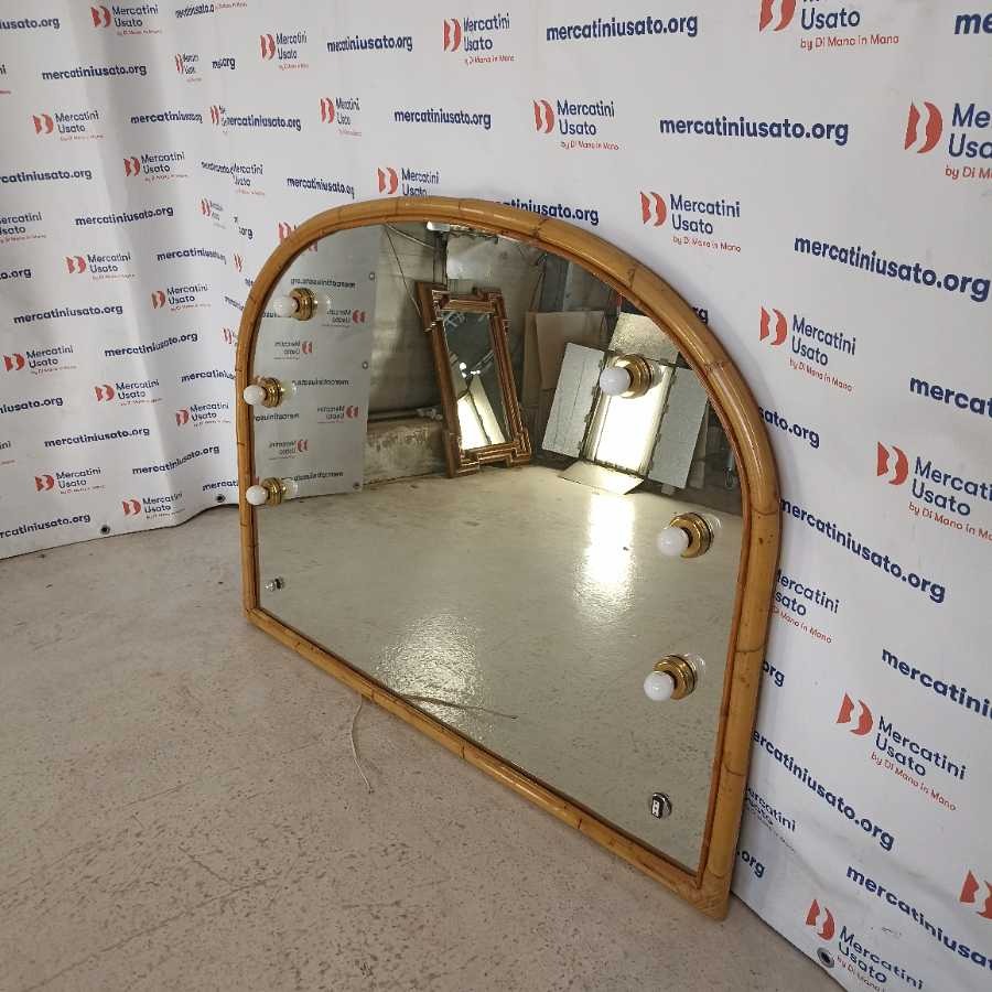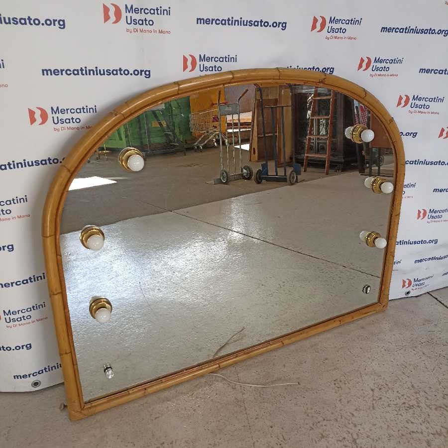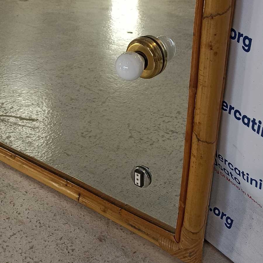 Grande Specchio in Bambù con luci. Struttura in legno con cornice in bambù. In buone condizioni.