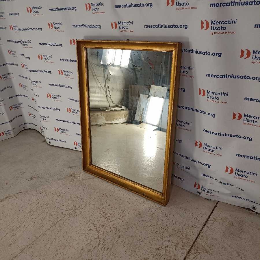 Specchio in legno dorato. Struttura in legno laccato oro. Richiede piccoli interventi di restauro.