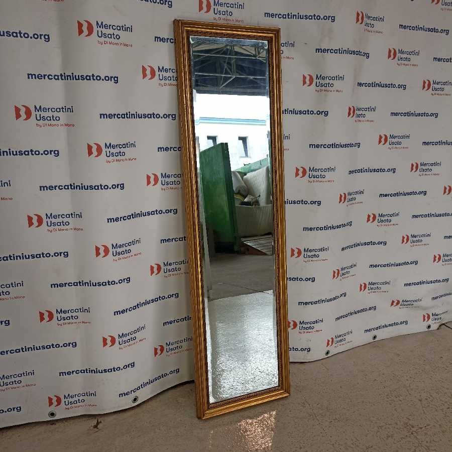 Specchio in legno dorato. Struttura in legno con cornice intagliata e dorata. Vetro molato. In buone condizioni.