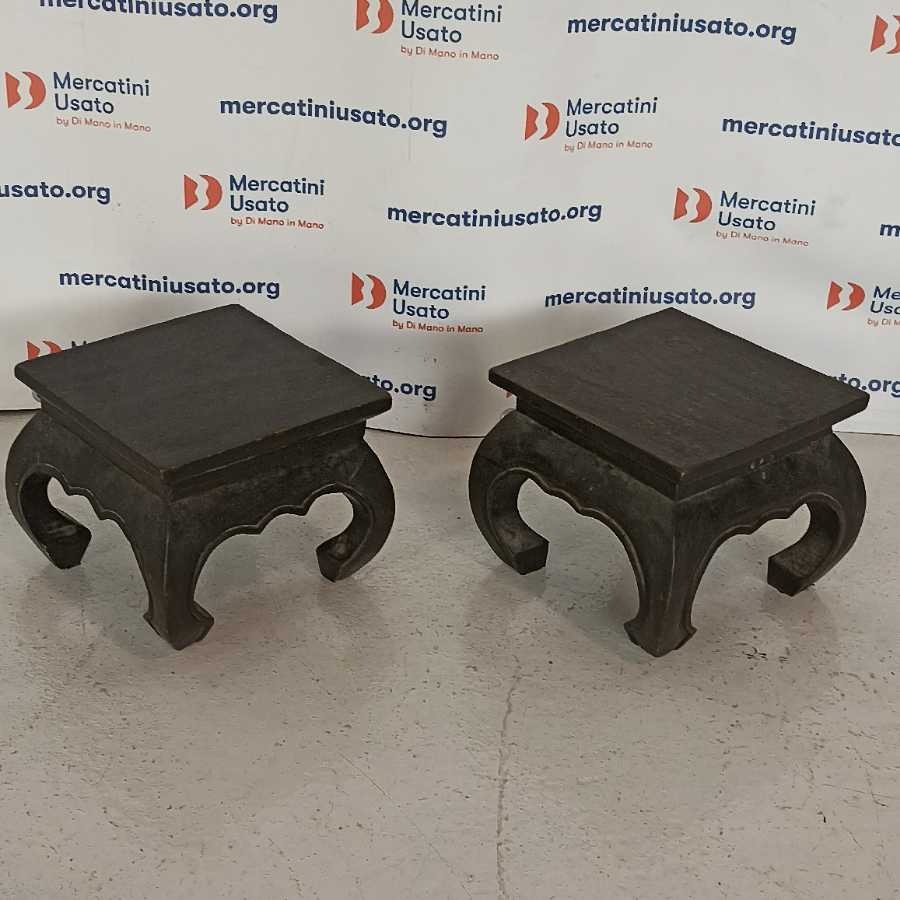 Coppia di Portavasi stile Etnico. Struttura in legno intagliato ed ebanizzato. Richiedono piccoli interventi di restauro.