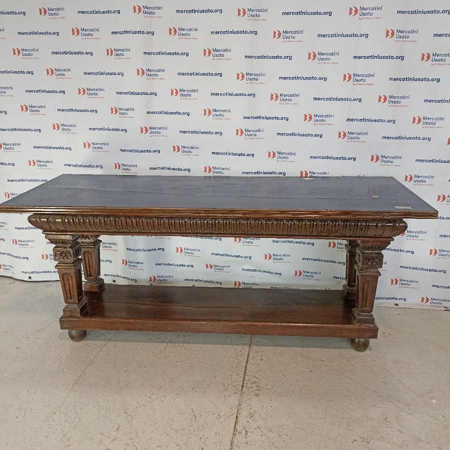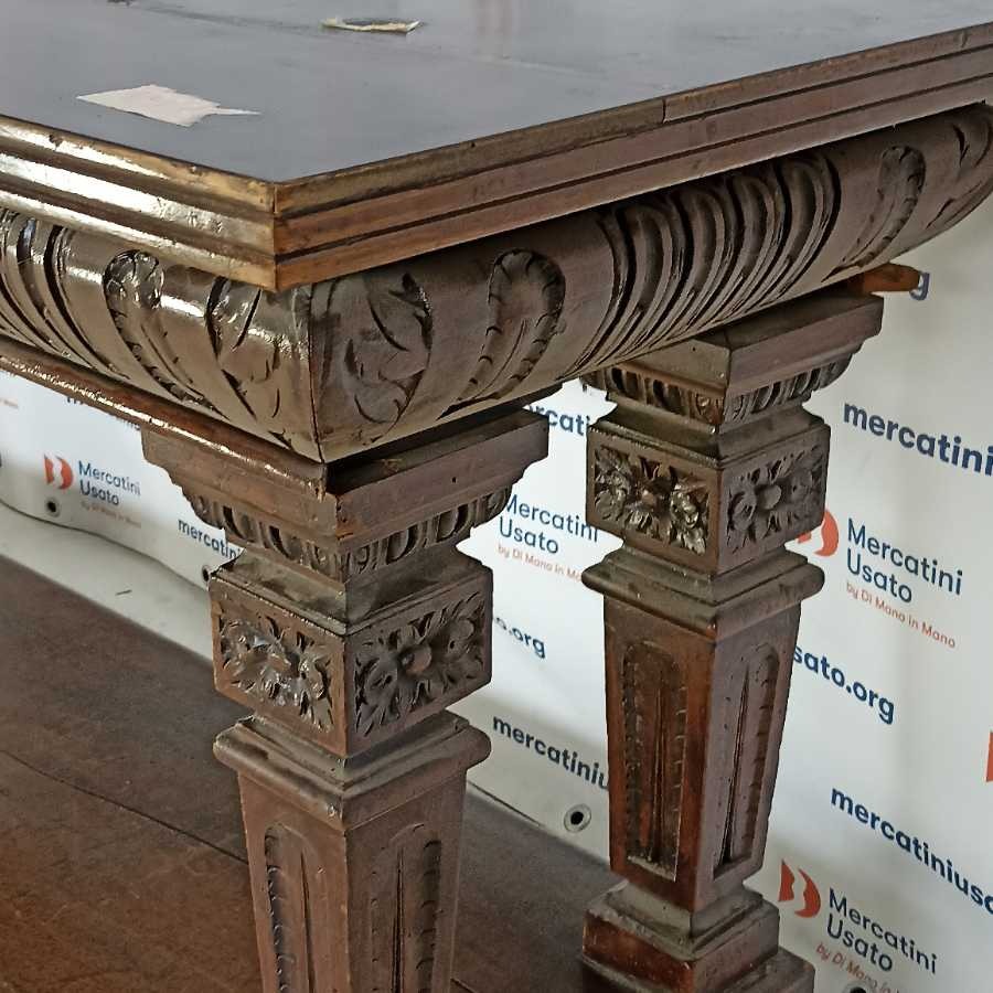 Grande Tavolo da lavoro stile Neogotico primi 900. Struttura in legno intagliato. Piano rivestito da restaurare. Richiede interventi di restauro.