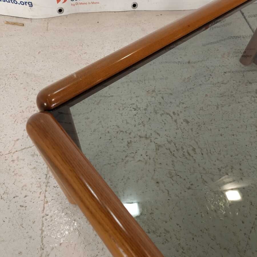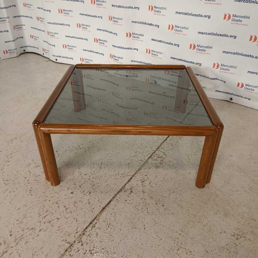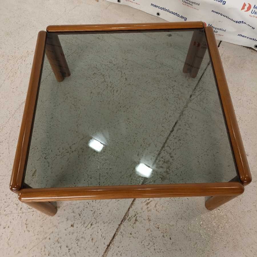Tavolino con Piano in vetro fumé. Struttura in legno. In buone condizioni.