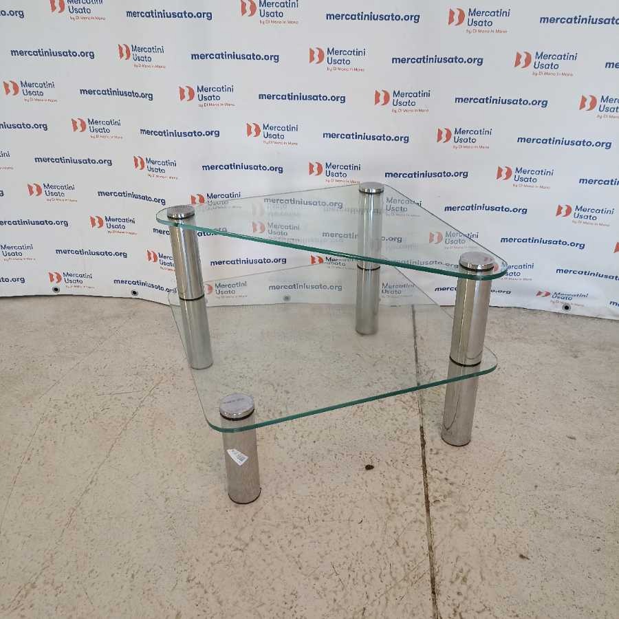 Tavolino da Salotto con ripiani in vetro. Struttura in metallo cromato. Presenta piccoli sbecco.