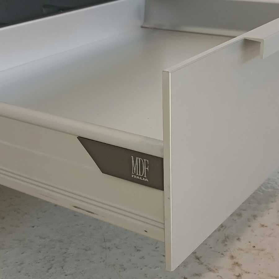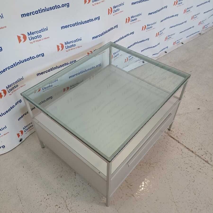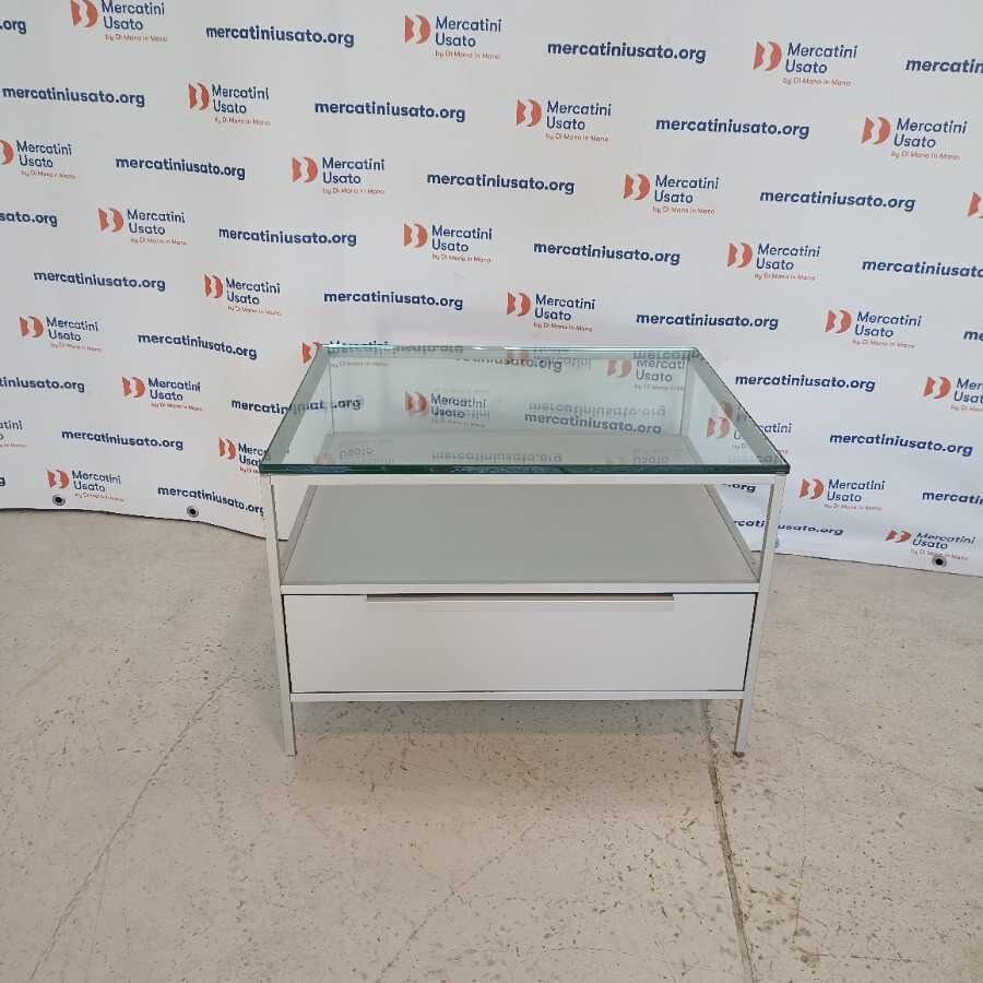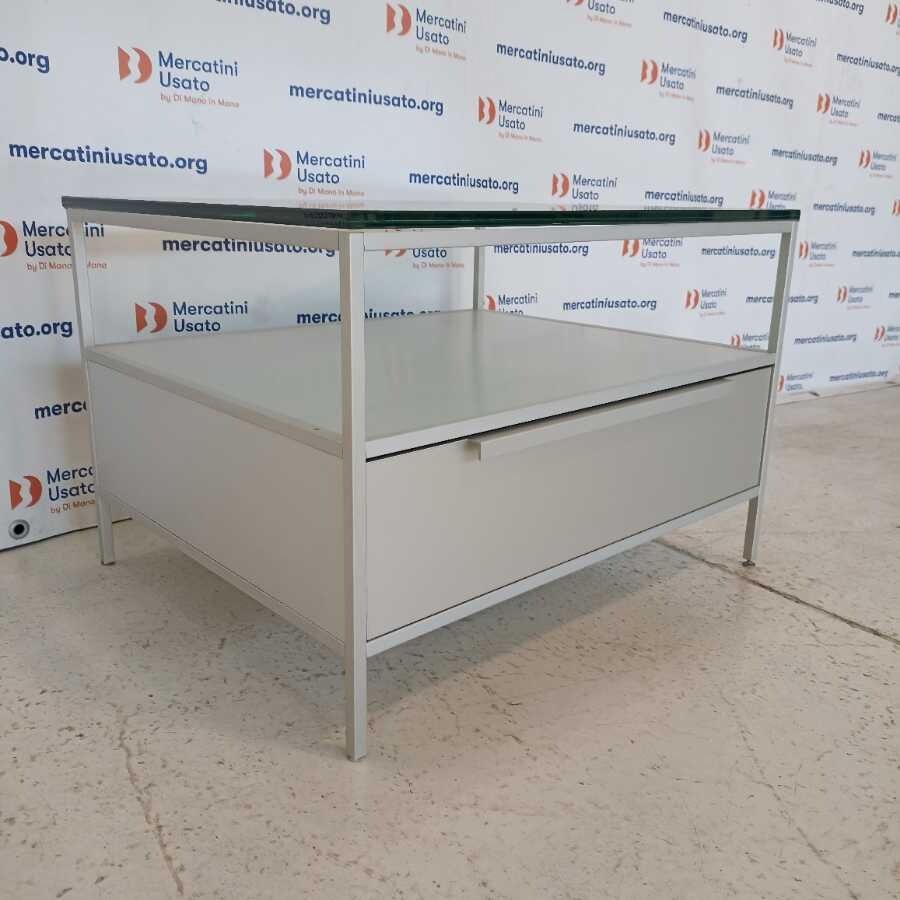 Tavolino in metallo MDF Italia. Struttura in alluminio con piano in cristallo spesso 1,5 cm. e cassetto scorrevole. In buone condizioni.
