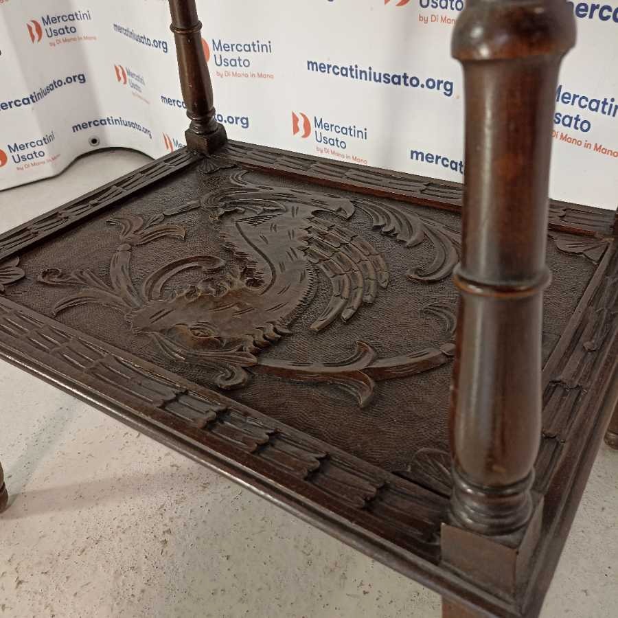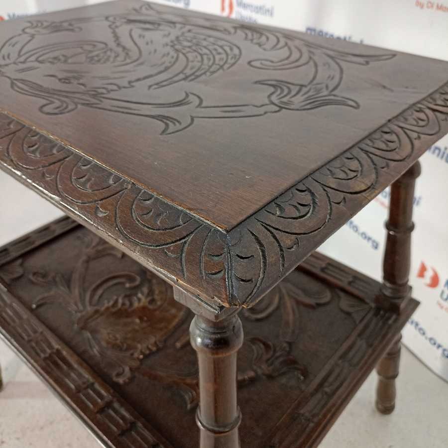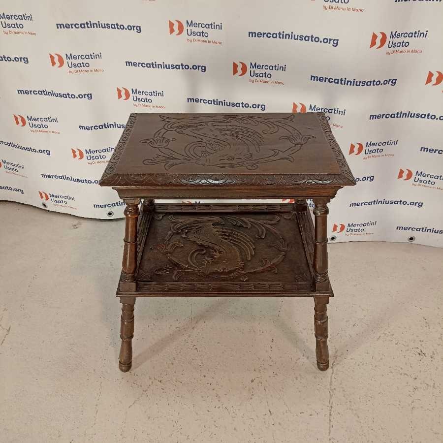Tavolino intagliato stile Etnico. Struttura in legno intagliato con 2 piani. In buone condizioni.