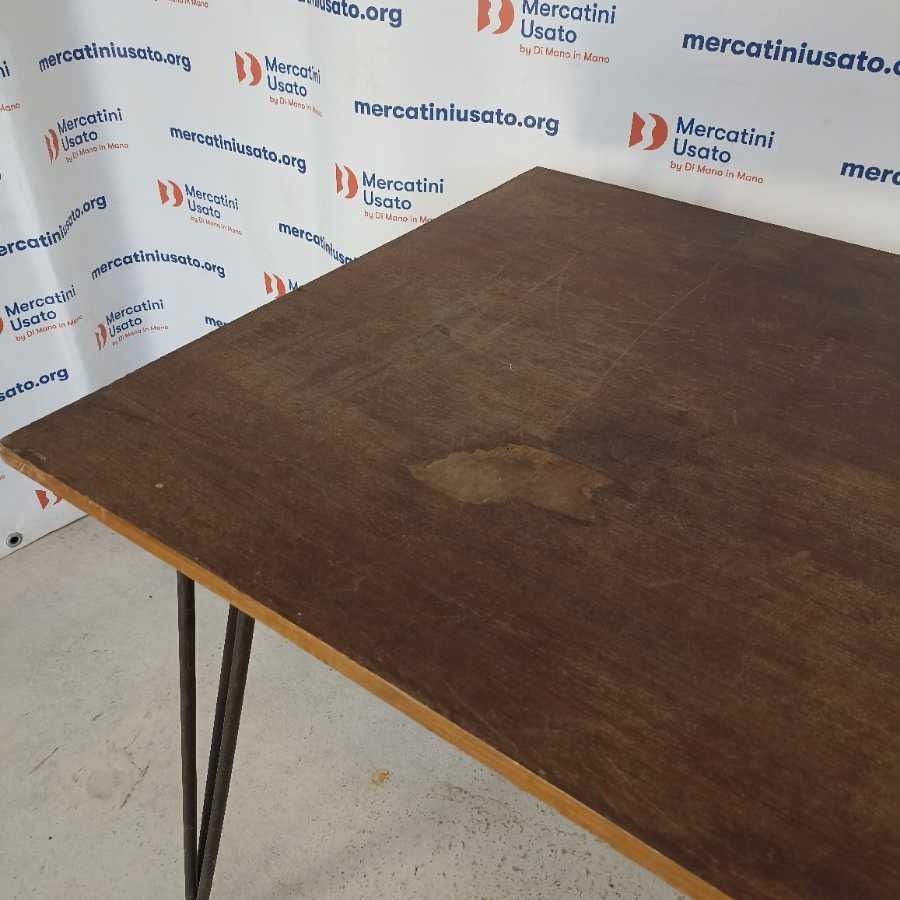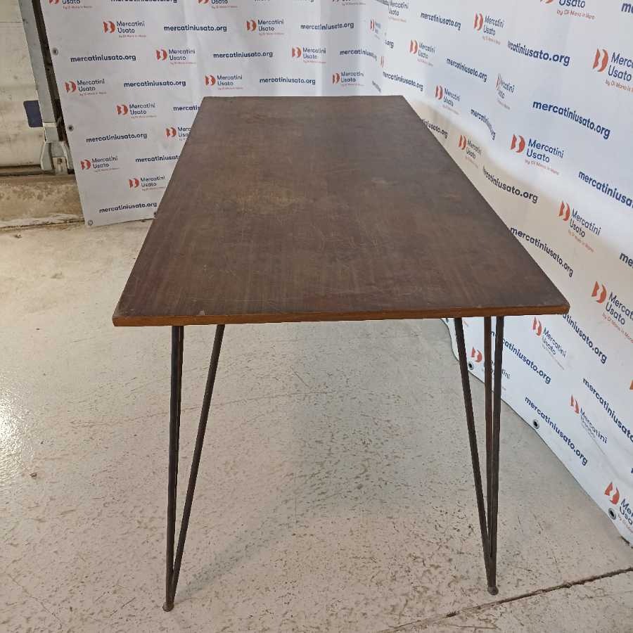 Tavolo Design anni 60. Struttura in legno con gambe in ferro. Richiede restauri al piano.