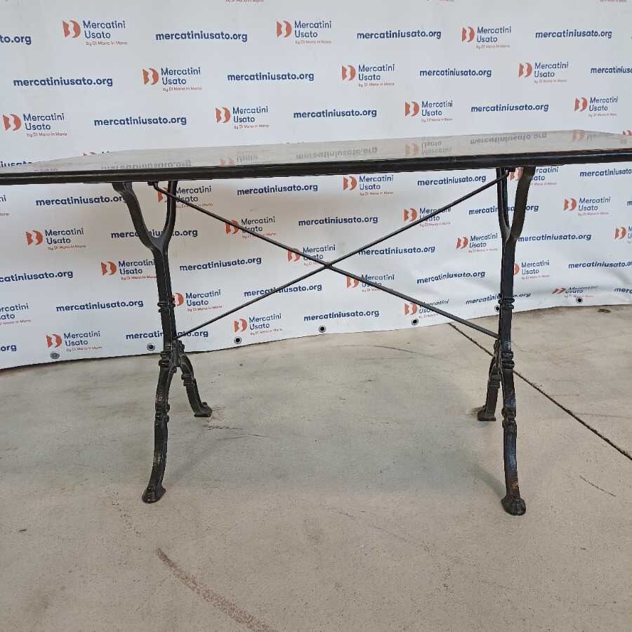 Tavolo in Ferro da esterno. Struttura base in ferro laccato nero con piano in legno e formica. In buone condizioni.