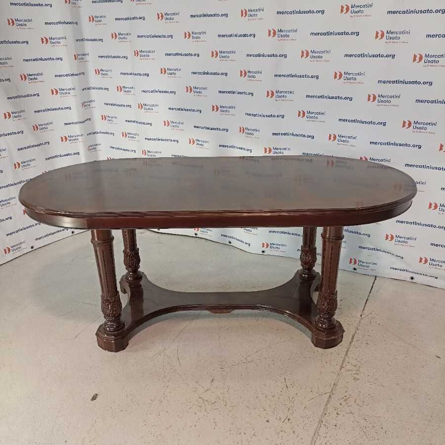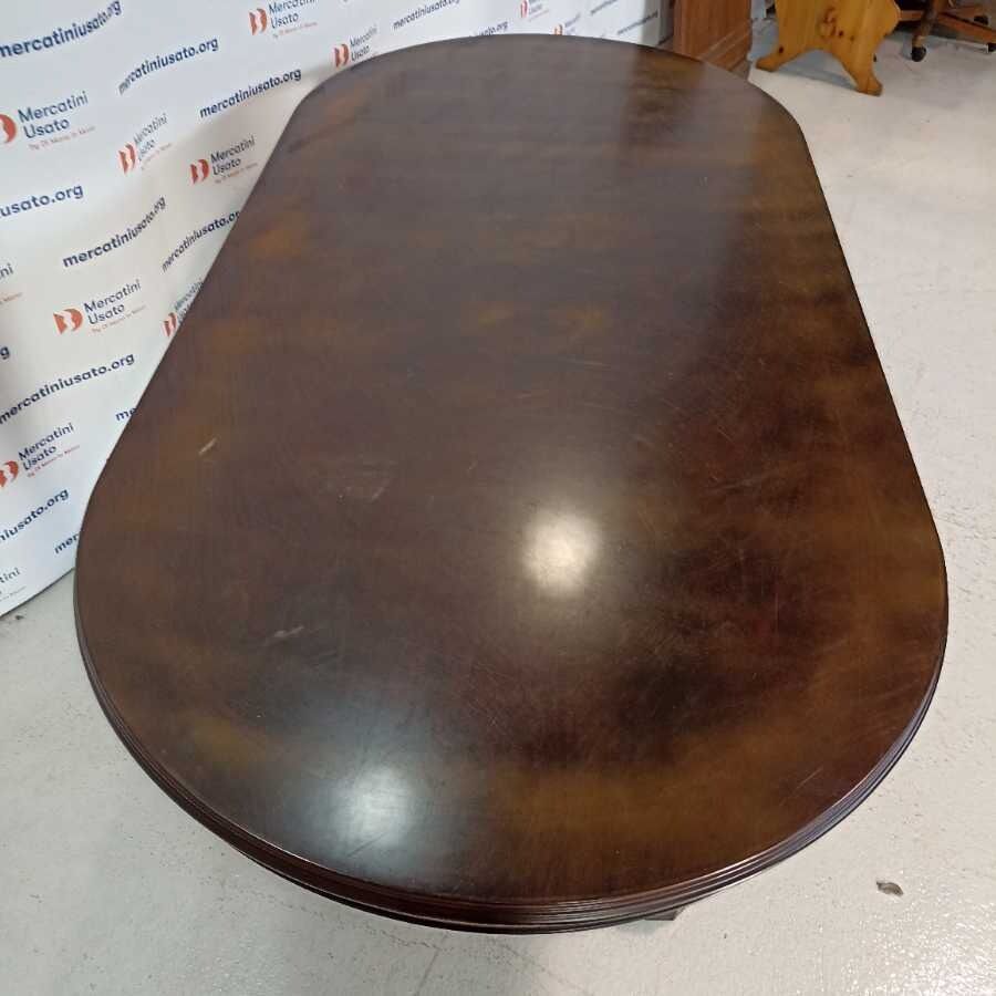 Tavolo ovale in stile Inglese di metà 900. Struttura in legno intagliato colore mogano. In buone condizioni.
