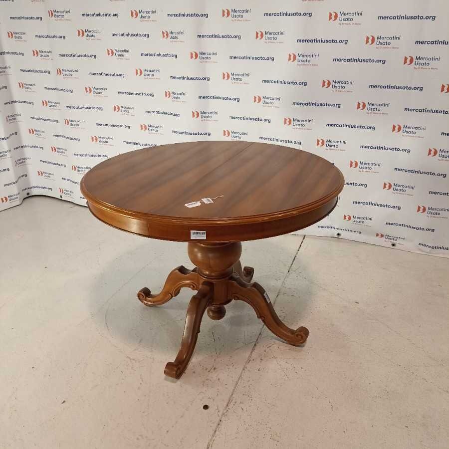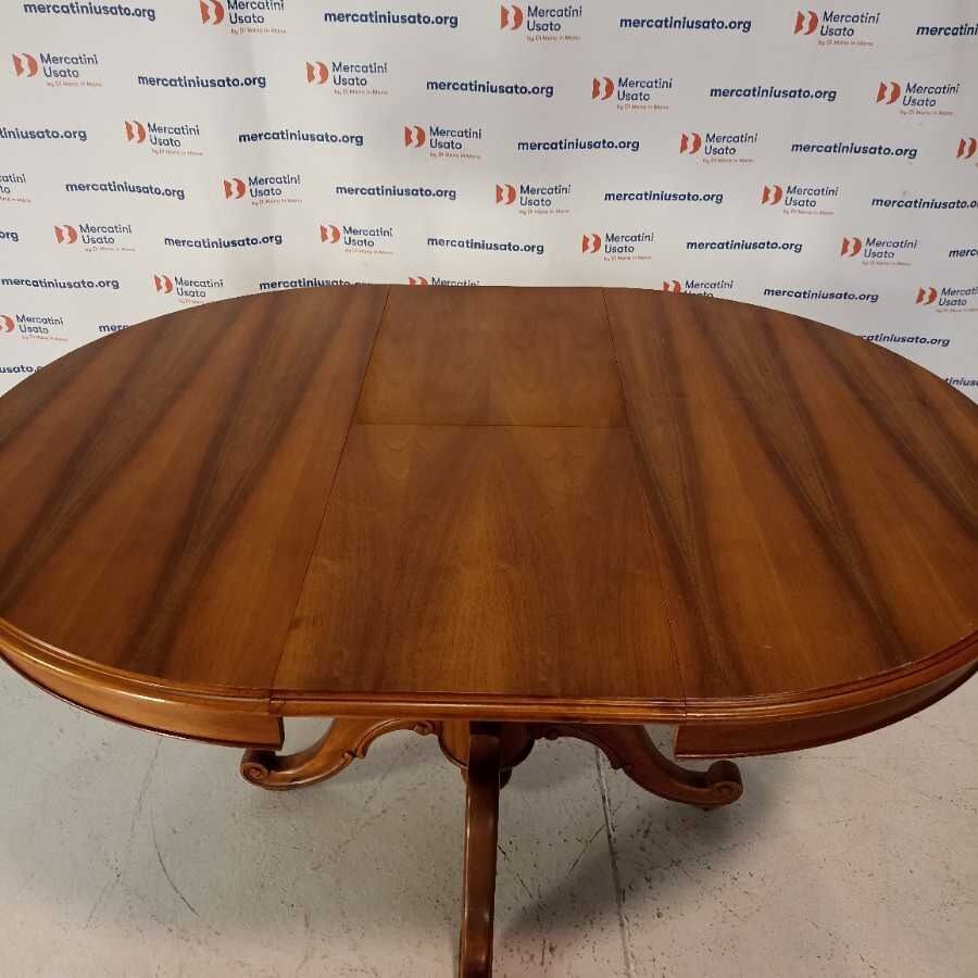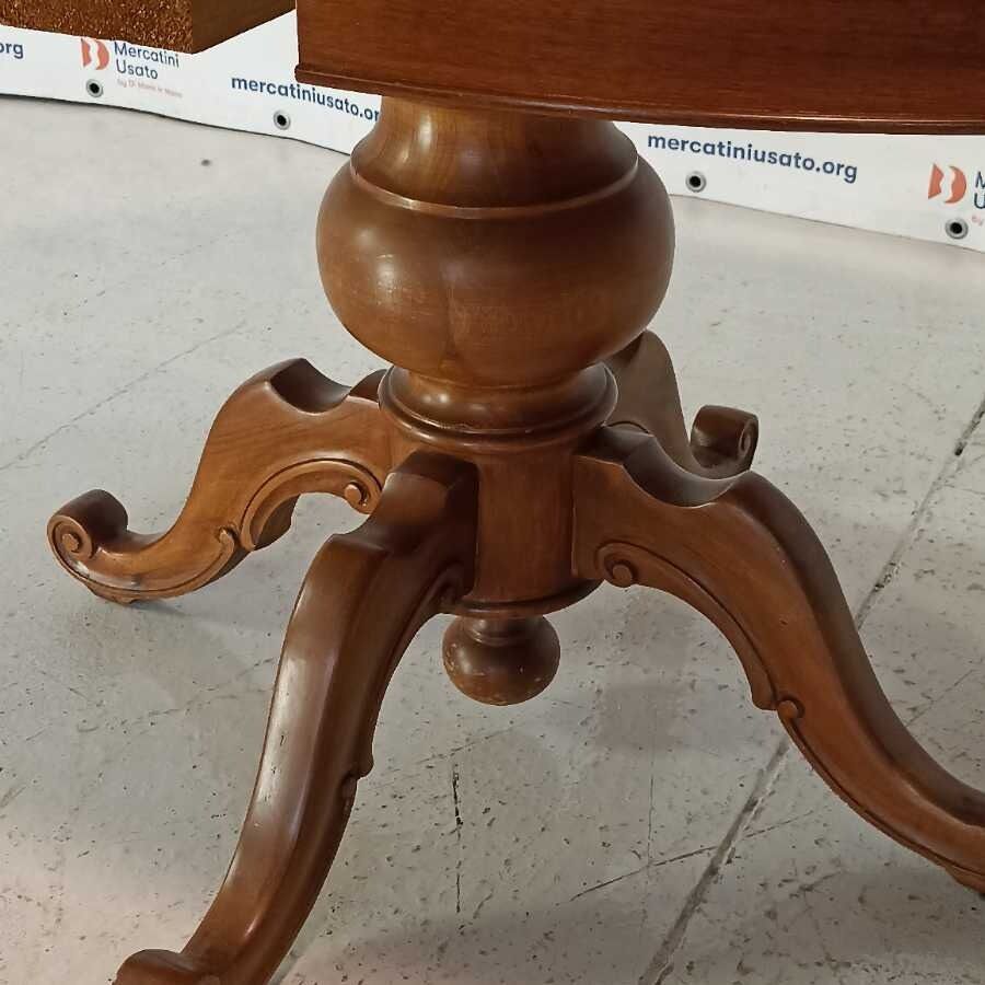 Tavolo rotondo allungabile in stile. Struttura in legno con base intagliata. In buone condizioni.