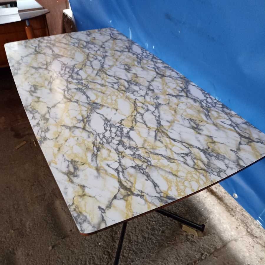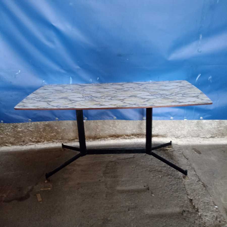Tavolo Vintage anni 60-70. Struttura in ferro laccato nero con piano in formica effetto marmo.