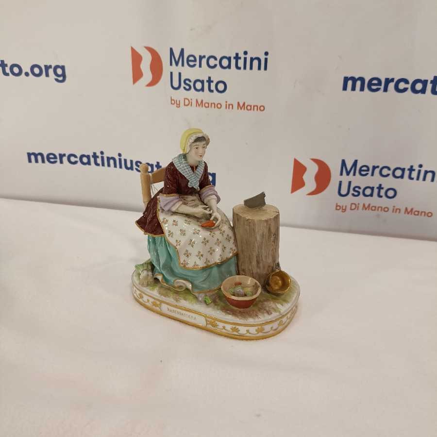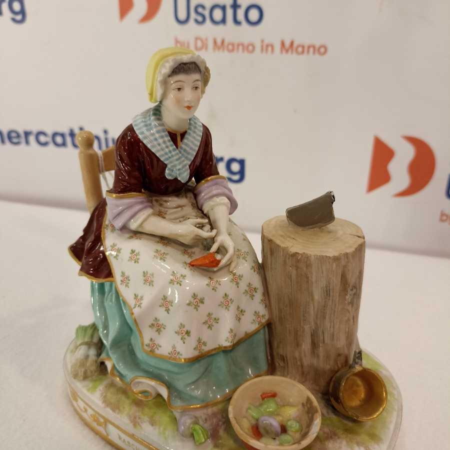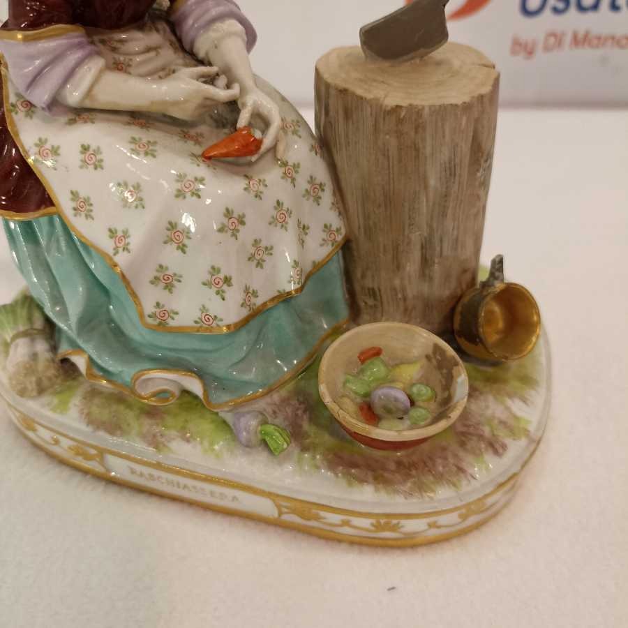 Figurina Di Donna In Porcellana Raffigurata Mentre Pulisce Le Verdure.Marchio “”Cozzi”” Sotto La Base.