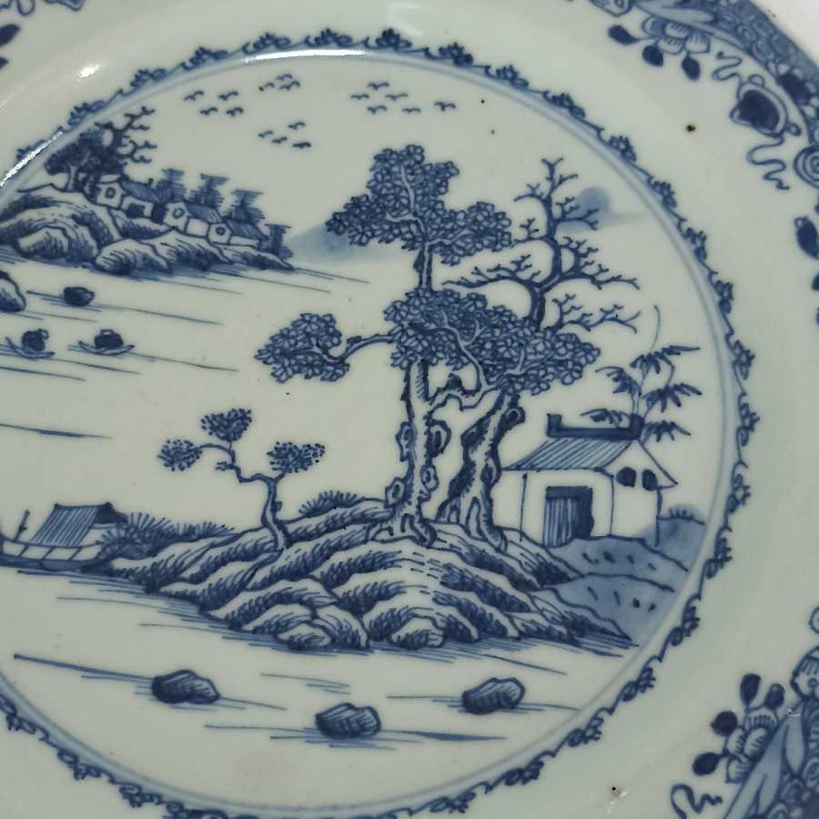 Piatto Cina prima metà 900. Piatto cinese in porcellana blu e bianca a tema paesaggio.