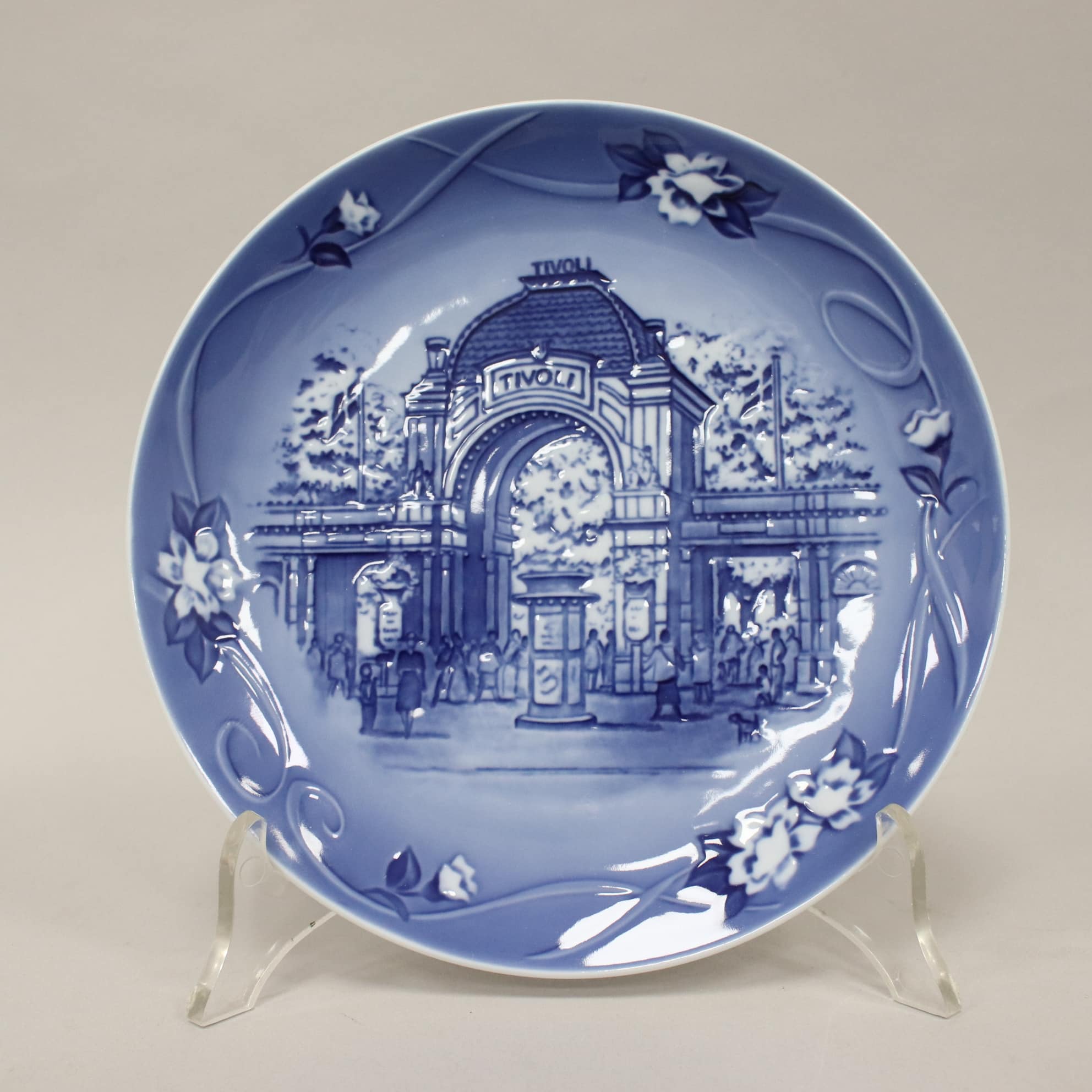 Sesto ed ultimo piatto della serie Intorno al Mondo, raffigura ‘Ingresso Principale Parco Tivoli’, il vecchio parco di svago e divertimento Tivoli, fondato da Georg Carstensen nel 1843 di trova nel centro di Copenhagen.