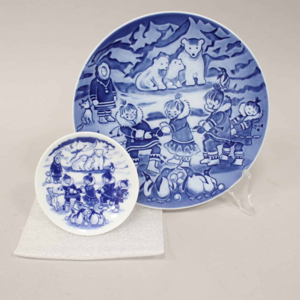 Royal Copenhagen Piatto di Natale 2005 completo di box, booklet e certificato assente è l’ottavo della serie ed è intitolato ‘Ragazzi d’Inverno in Groenlandia’ disegno di Ingrid Jensen.