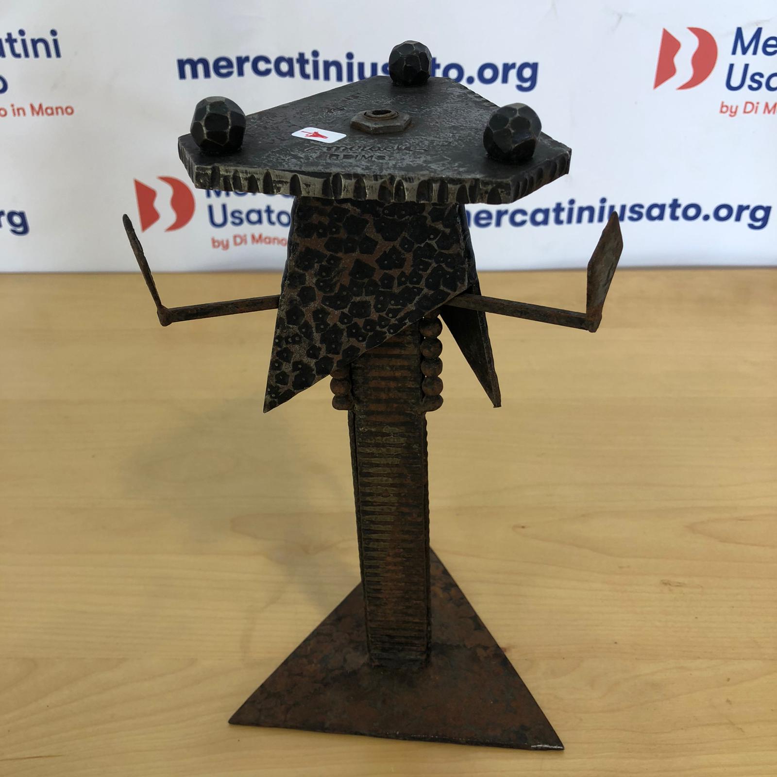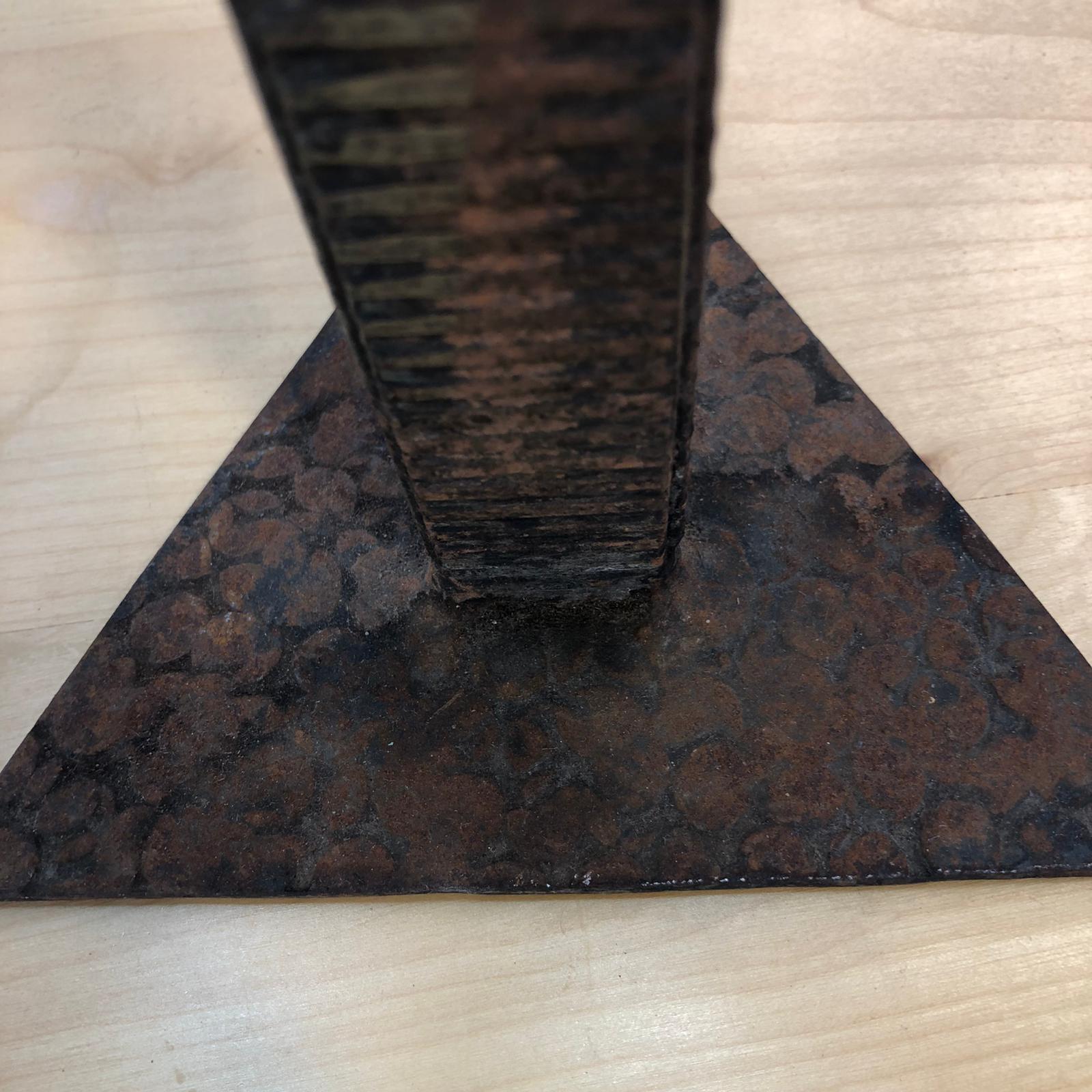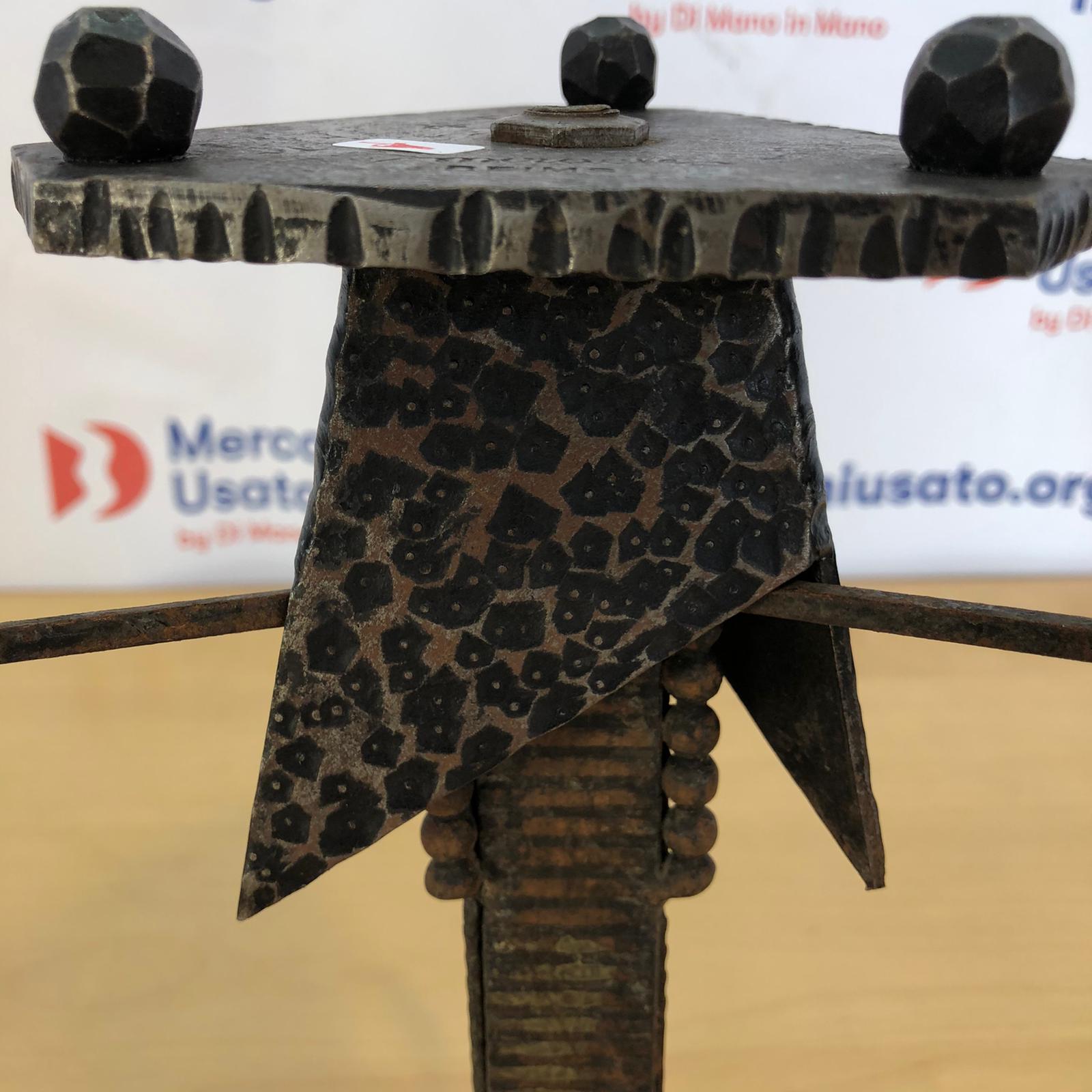 Abat Jour stile Brutalista Miracle Reims in ferro battuto. L’oggetto è un’insieme di triangoli uniti da una colonna. Lavite centrale è spezzata, occorre saldatura per unire la base al portalampade.