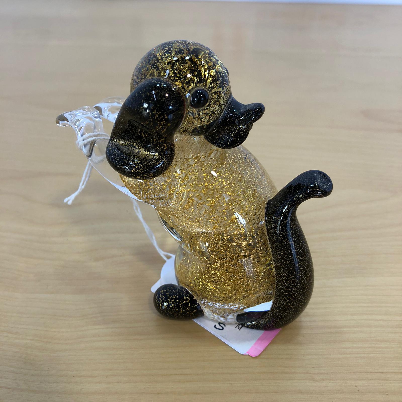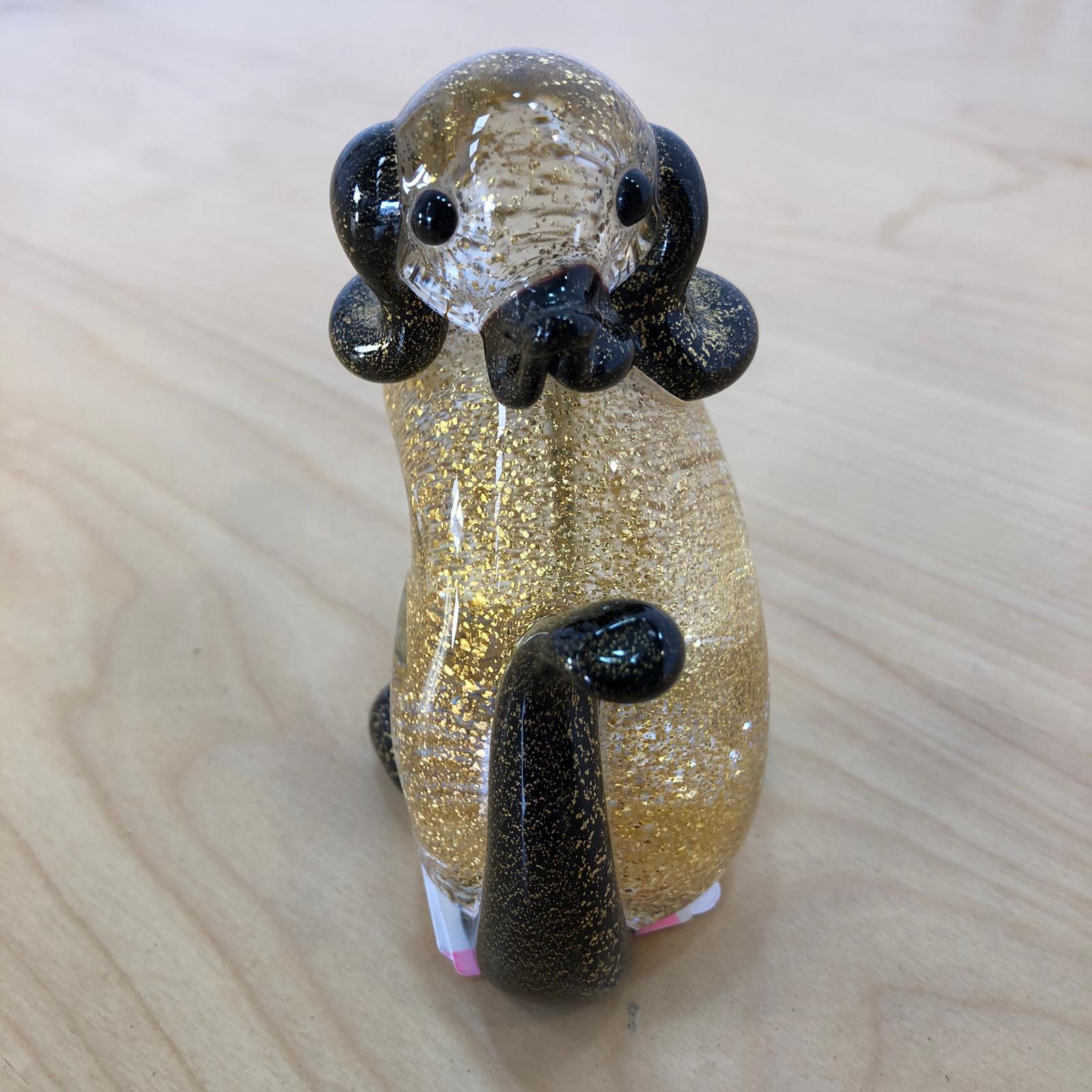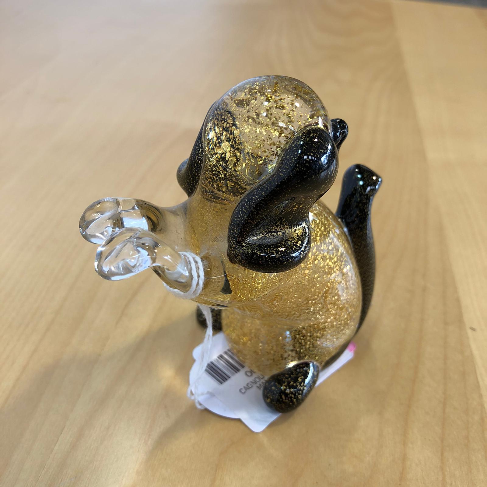 Cagnolino Gambaro & Poggi Manifattura Murano. In vetro soffiato trasparente e nero con polvere dorata. Firma sulla base.