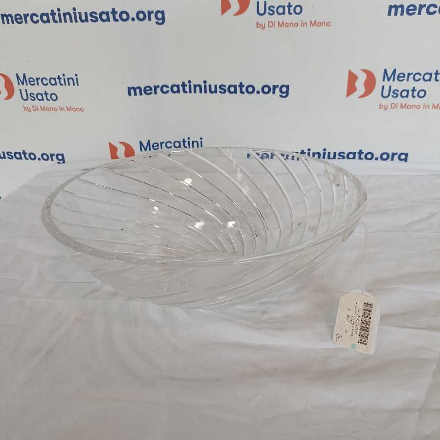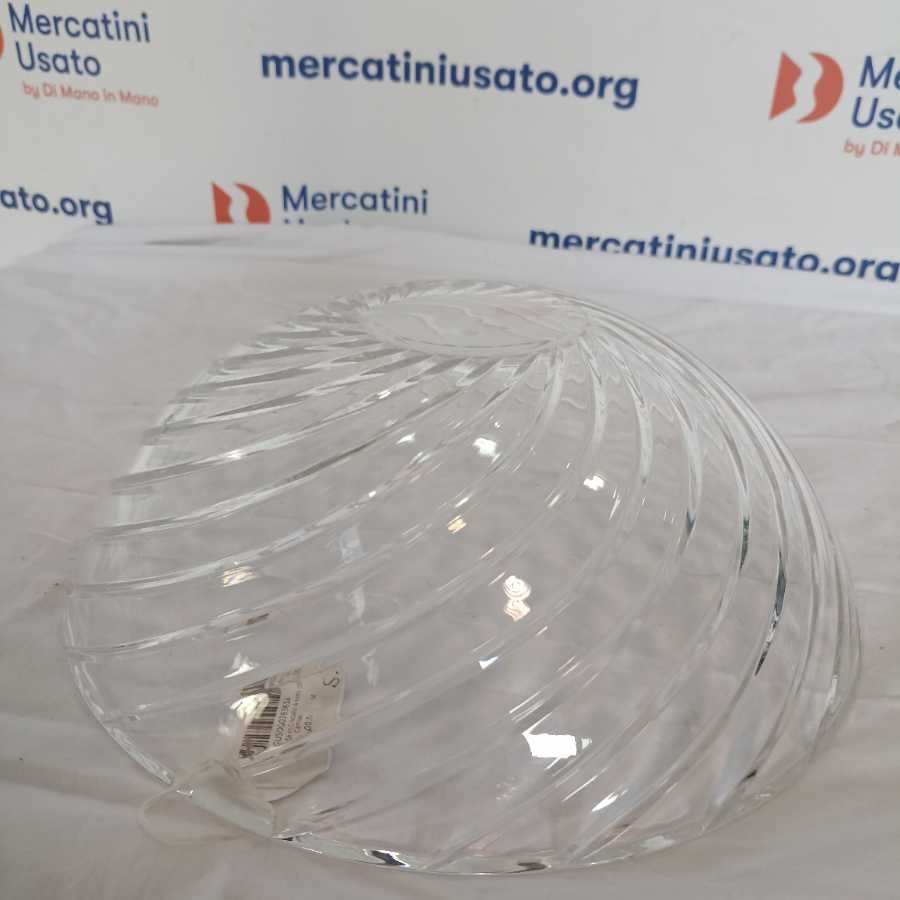 Grande ciotola in cristallo con decoro a spirale molata esterna. Marchio stampato a tergo.