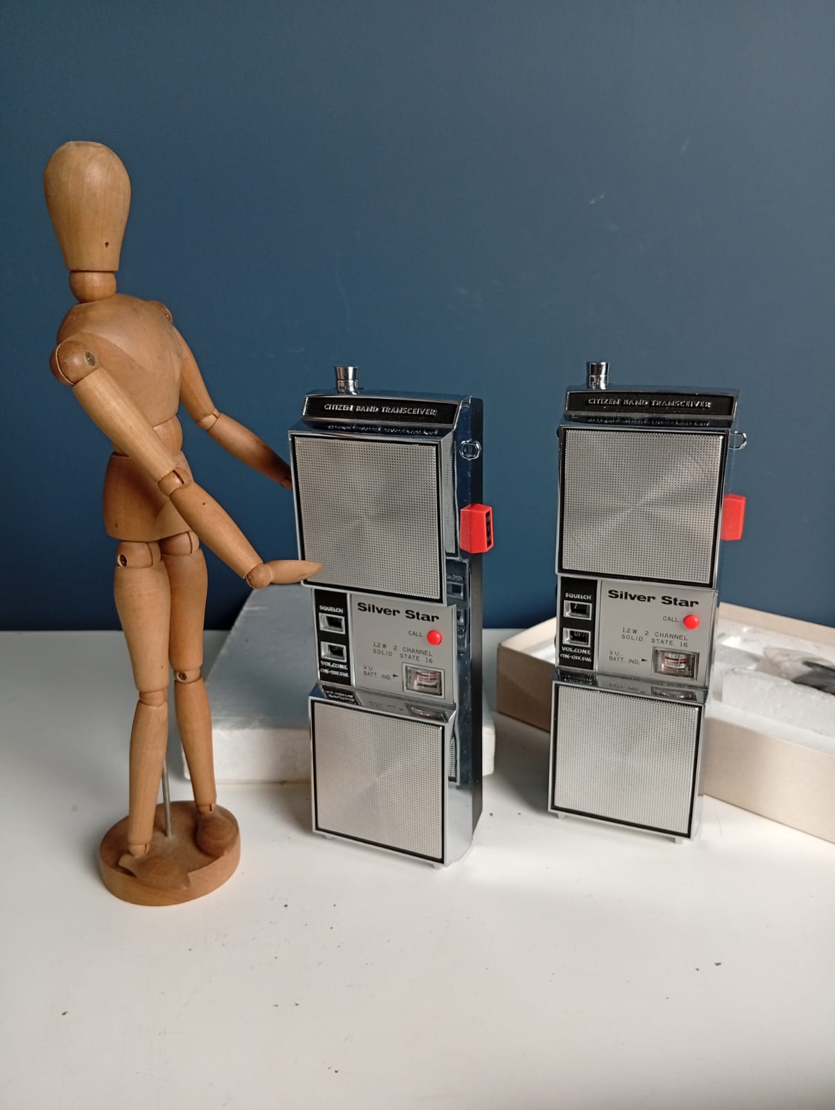 Coppia di Walkie Talkie Vintage CB Silver Star, con cavi.