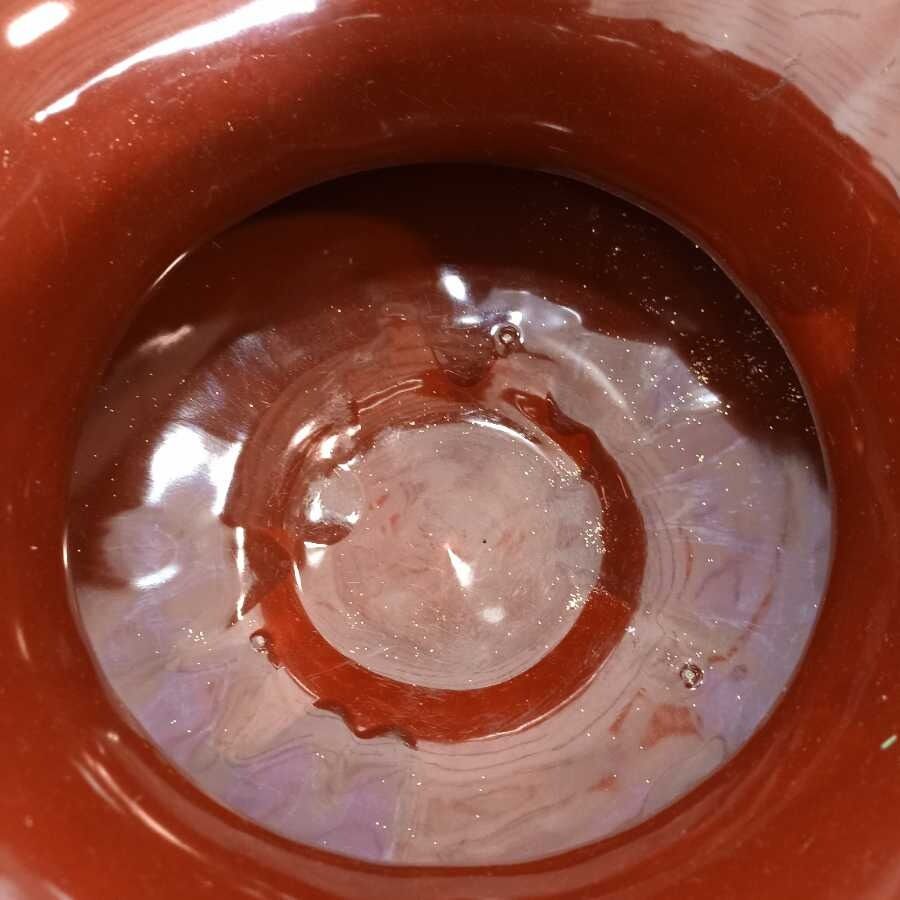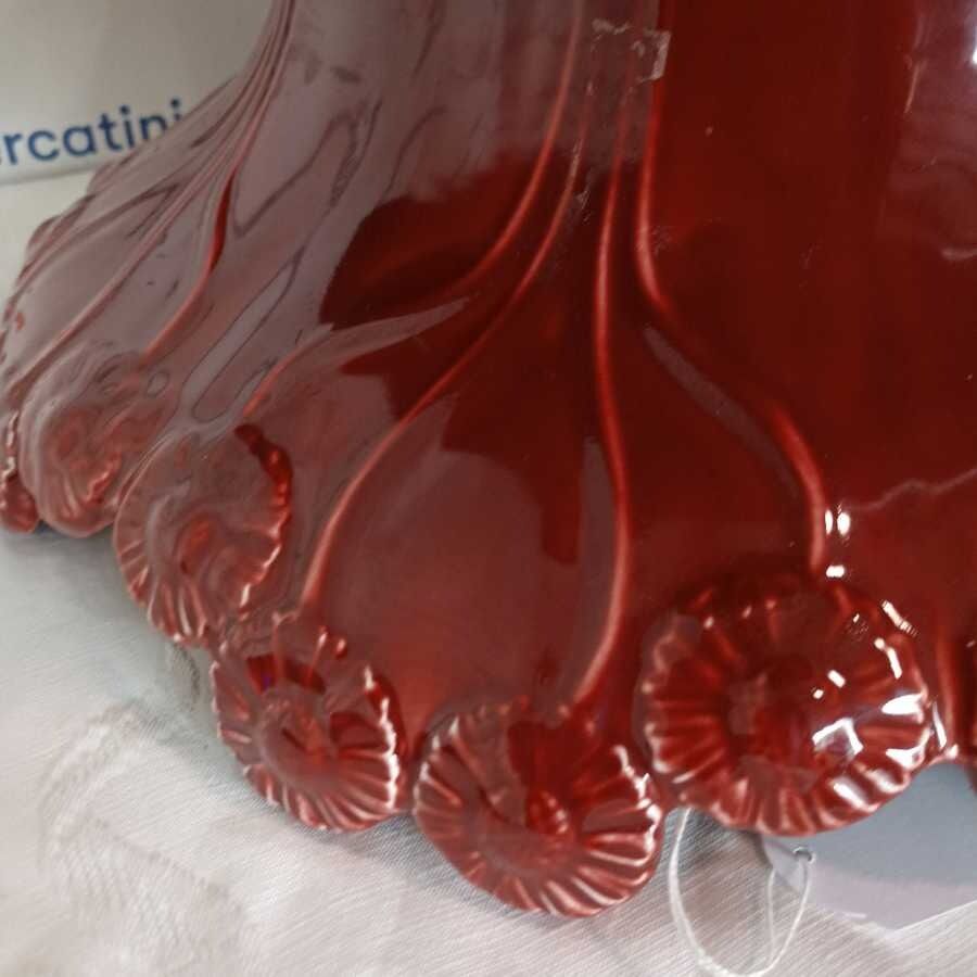 Grande Cachepot in stile Art Noveau Bordeaux in maiolica smaltata con bocca a motivi floreali tipici dello stile.