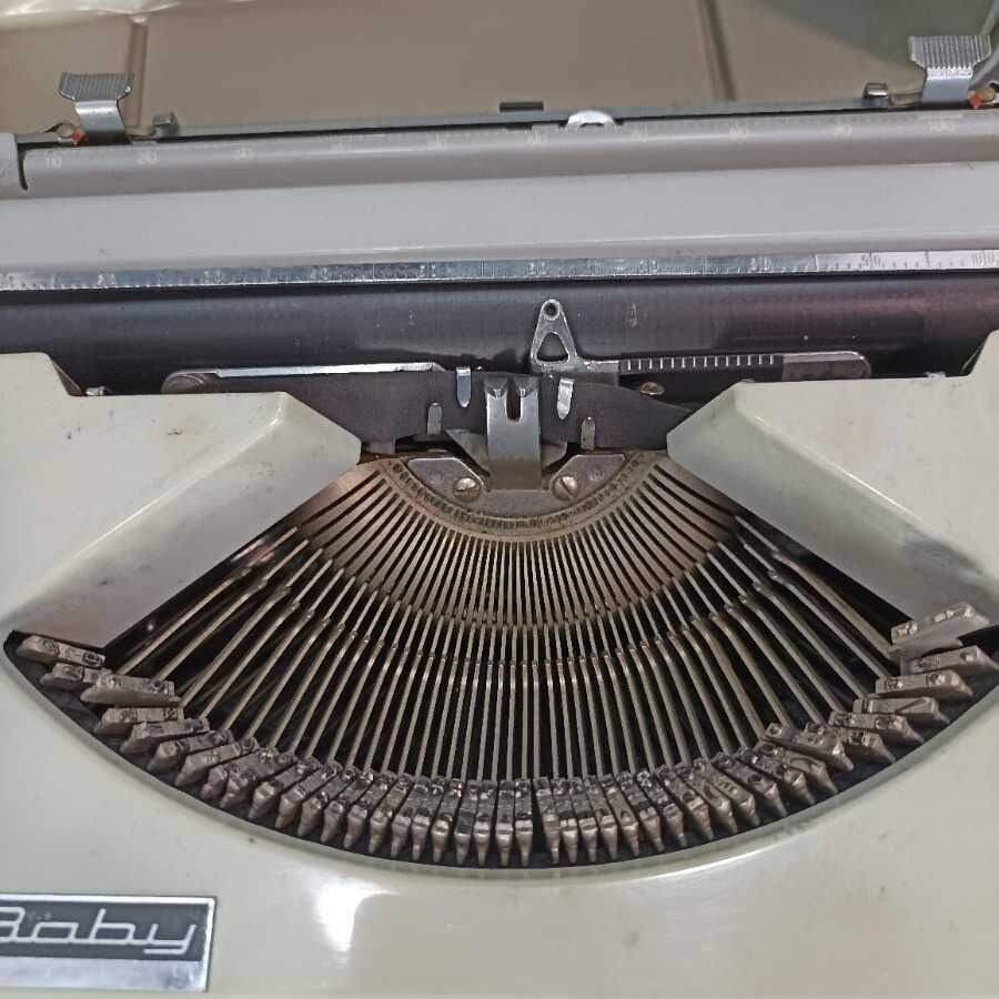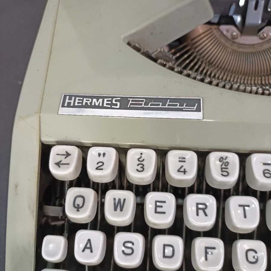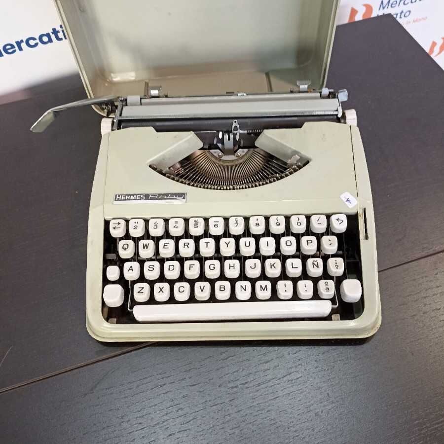 Macchina da scrivere Hermes Baby con custodia. Verde.