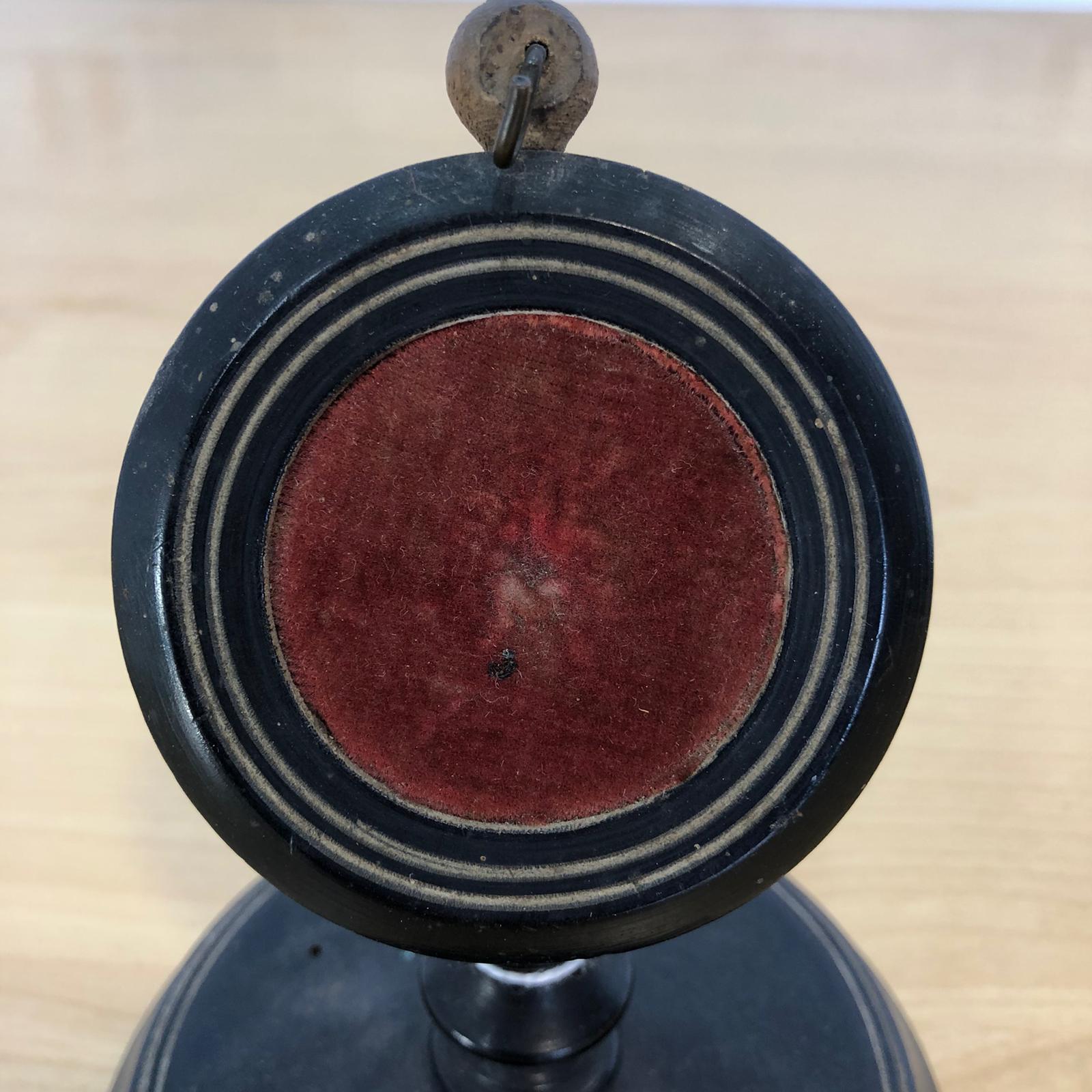 Porta Orologio da tasca in legno ebanizzato. Velluto e gancio in metallo.