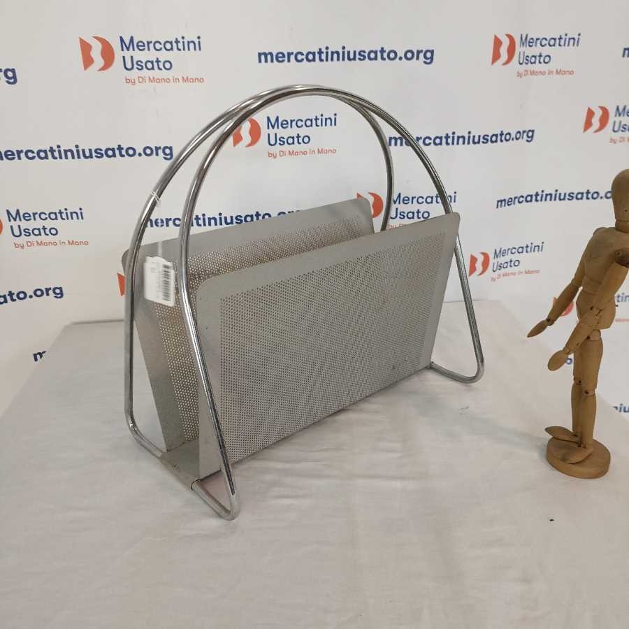 Porta riviste Space Age Design Mascagni. In metallo cromato e satinato.