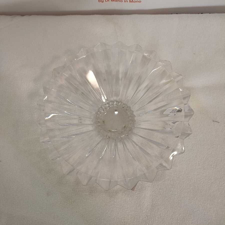 Portafrutta Centrotavola Rosenthal in cristallo con scanalature e base effetto bugnato.