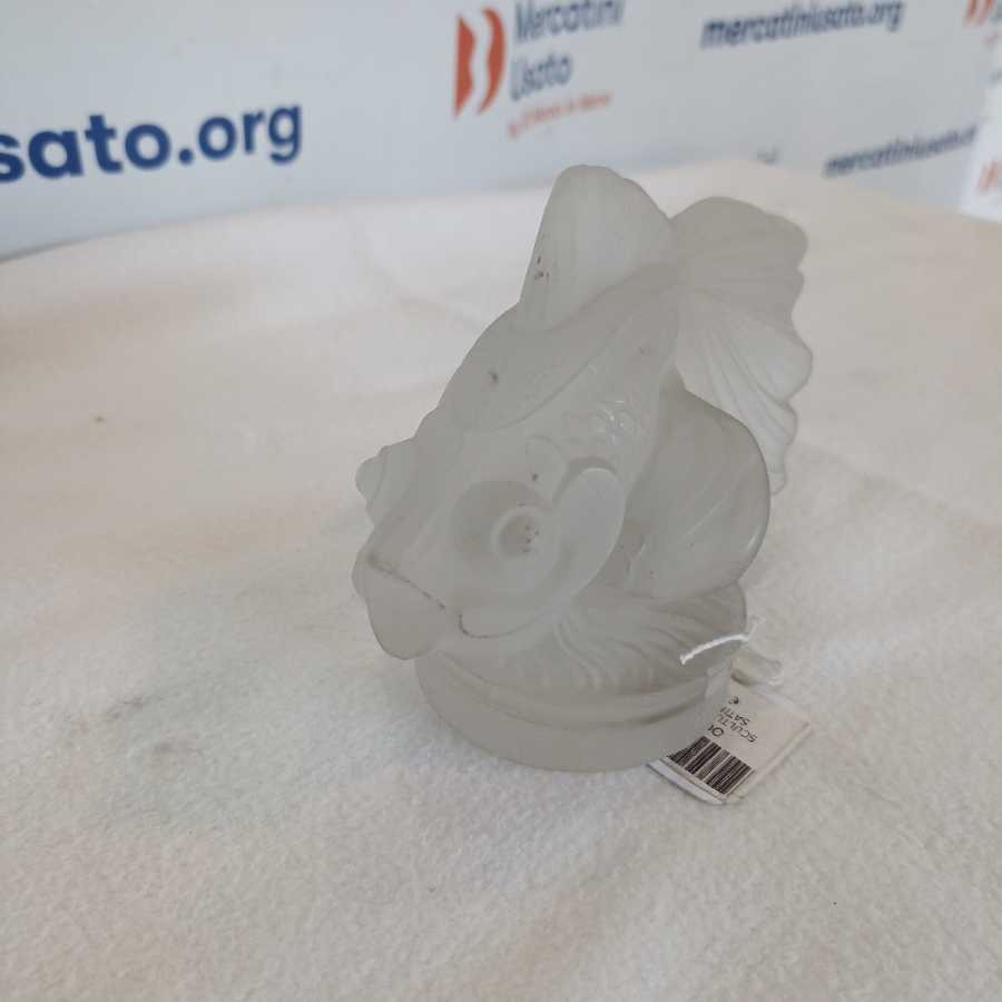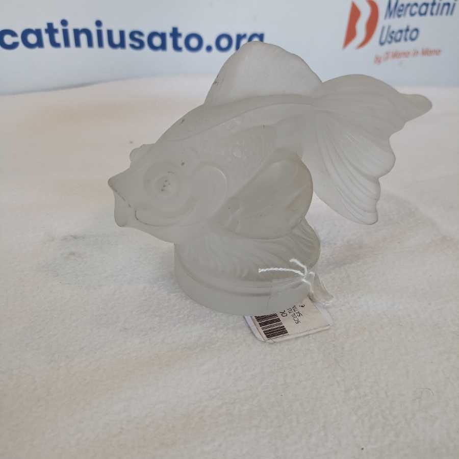 Scultura di pesce in vetro satinato utilizzabile anche come ornamento da cofano in stile Lalique