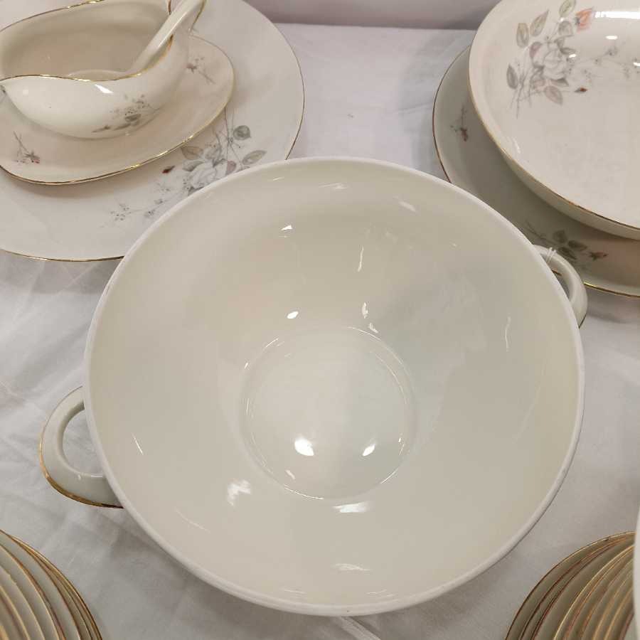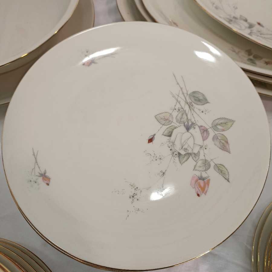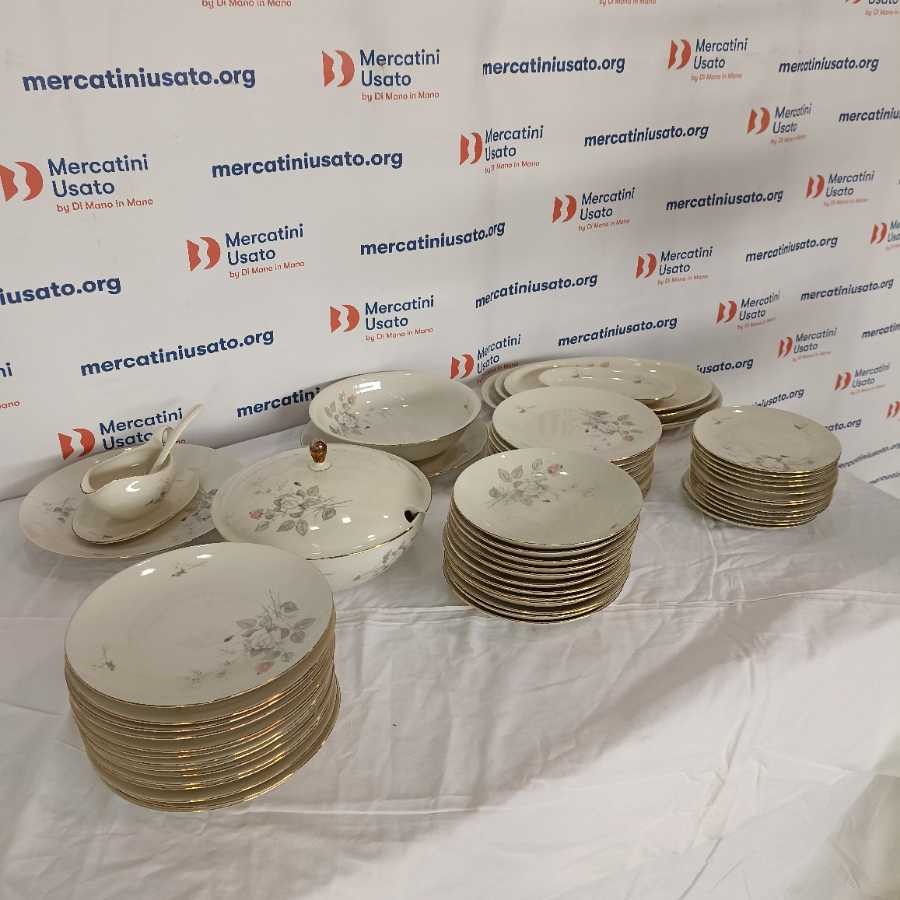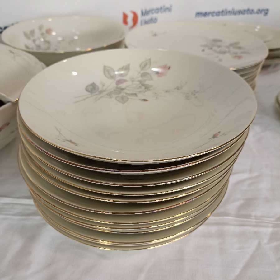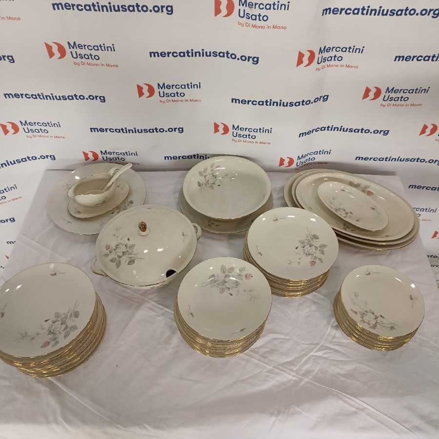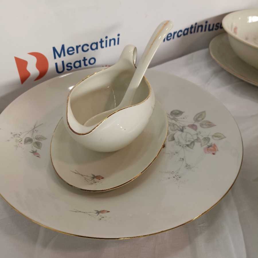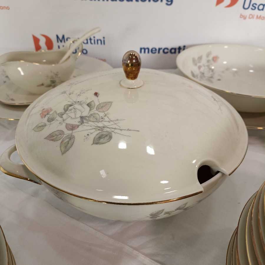 Servizio completo Bavaria Seltmann 12 persone. Modello Liang con decoro a rose composto da: 24 piani, 12 fondi, 12 dessert, zuppiera, insalatiera, 4 ovali da portata, 2 tondi da portata.